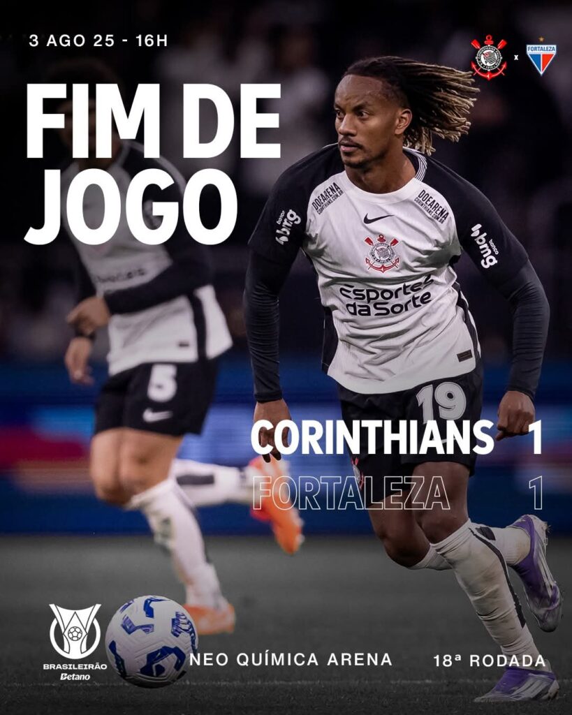 Con este empate, Corinthians suma 22 puntos y se mantiene en la décima posición del Brasileirao, a 15 unidades del líder Cruzeiro.