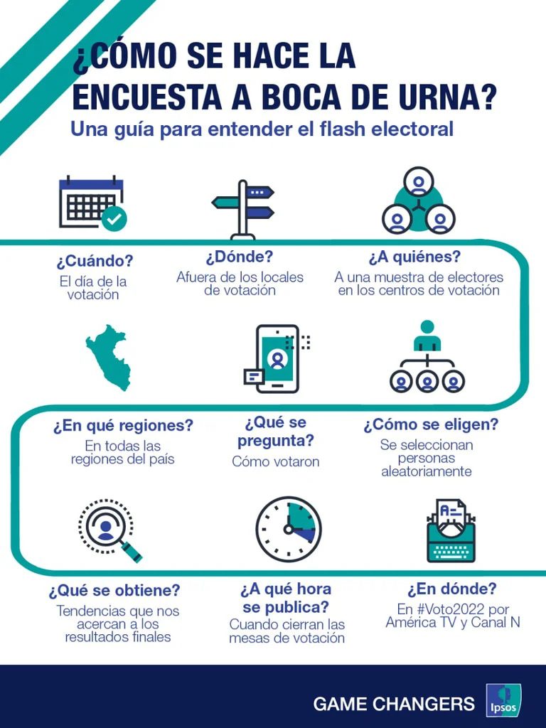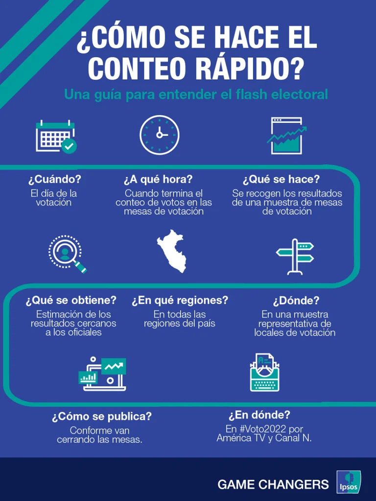 Sin embargo, tal como ha sucedido con anteriores procesos, la encuestadora Ipsos lanzará el flash electoral apenas concluyan las votaciones, a las 17:00 horas, que será transmitido por América Televisión y Canal N.