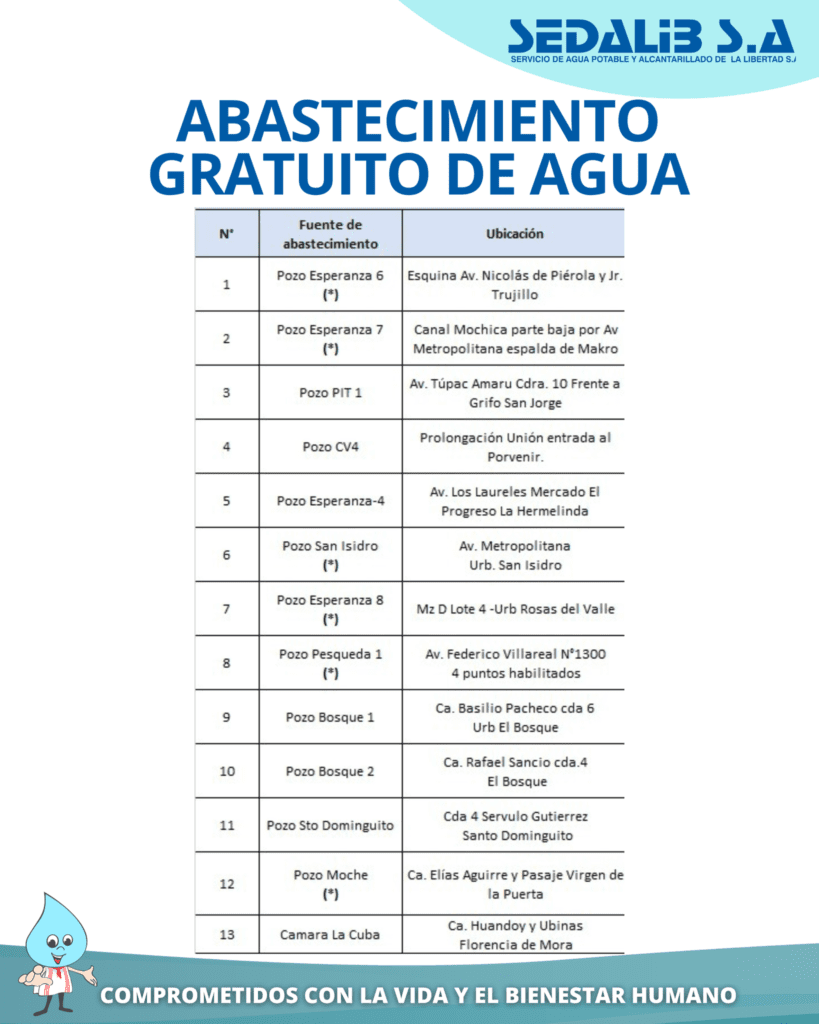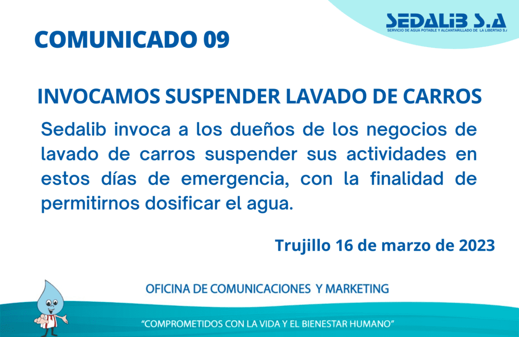 Informó que, como parte de su plan de contingencia, 25 cisternas atienden a las zonas más necesitadas y de la periferia de Trujillo.  A través de sus redes sociales, la empresa solicitó a los negocios de lavados de carros suspender sus servicios.