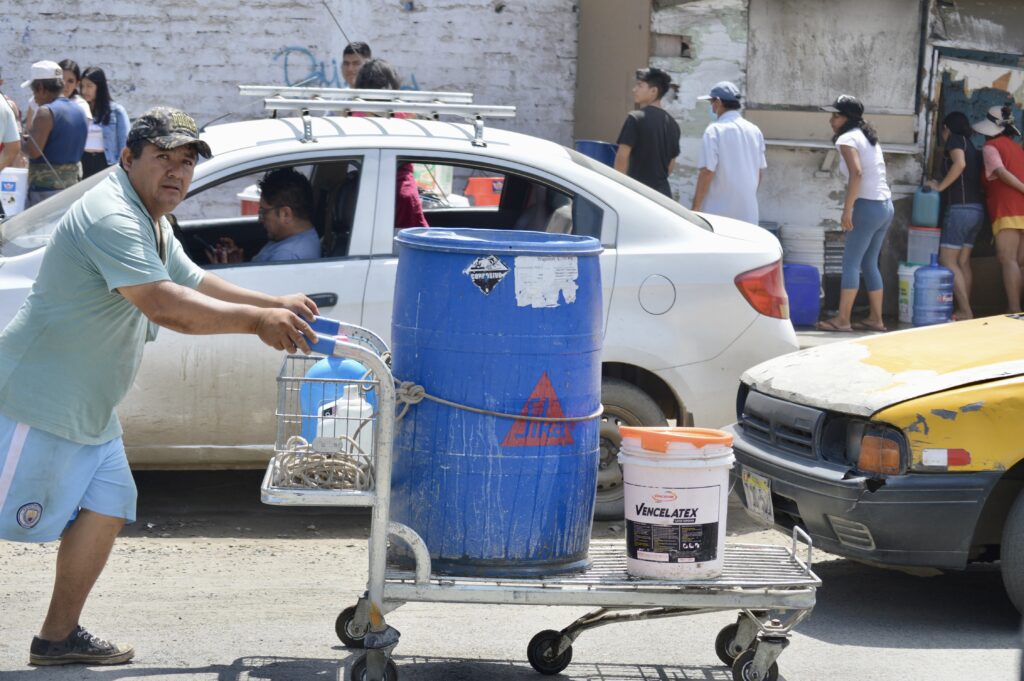 La fila la conforman decenas de personas; pero, también, recipientes de plástico y unidades móviles, como carretillas y motos furgones. Los reclamos por el respeto al orden son frecuentes. Los conatos de bronca, también. El sol y excesivo calor son otra guerra.
