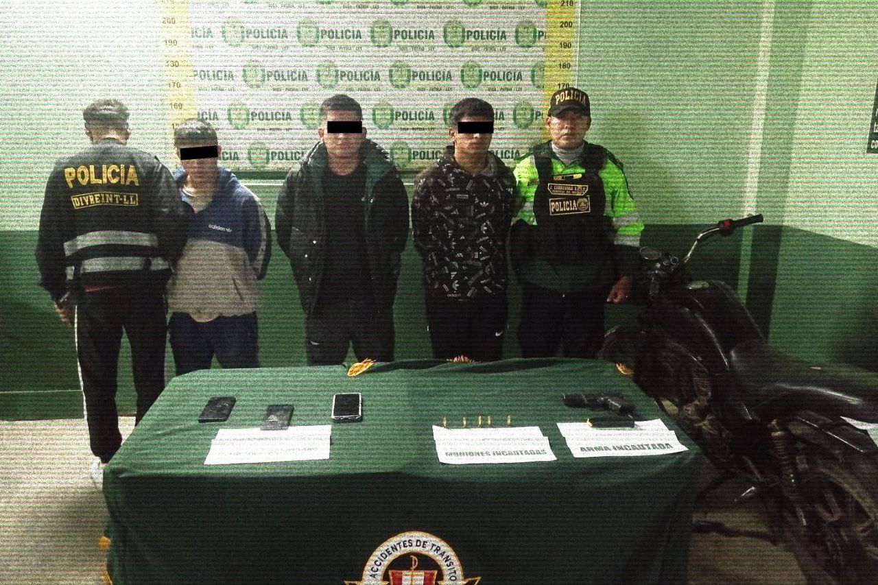 La intervención ocurrió cuando los agentes de inteligencia identificaron a tres sujetos a bordo de una motocicleta color blanco con negro, sin placa de rodaje, realizando movimientos sospechosos en la zona.