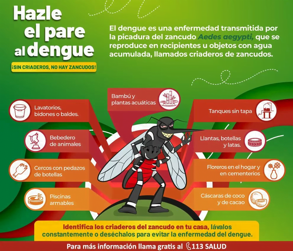 Aclaró que, si una persona presenta estos síntomas o sospecha haber contraído dengue, debe acudir al establecimiento de salud más cercano para descartar o confirmar la enfermedad.