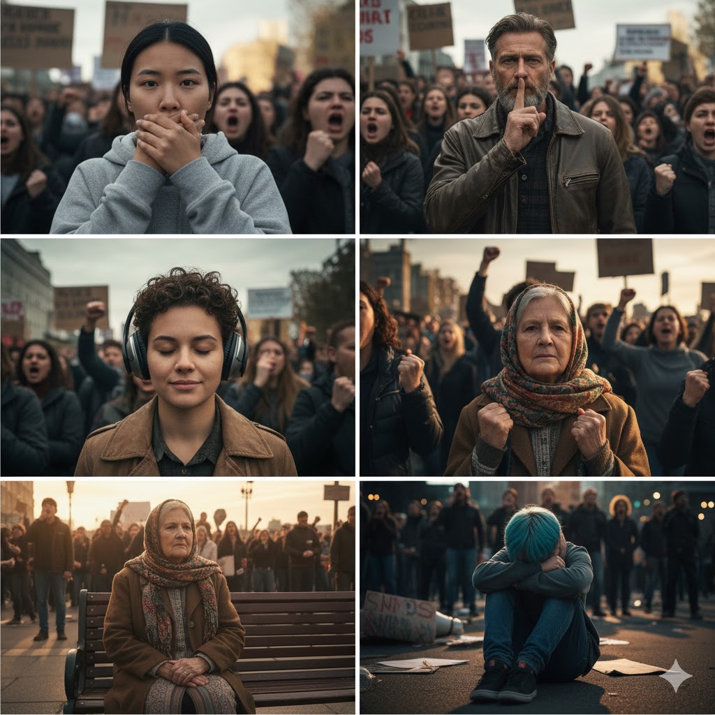 En mérito a este temor, a este pavor por vivir en un aislamiento social, se producen situaciones en las cuales los seres humanos perciben que sus opiniones, cuando van en contra de lo que se supone se entiende como «opinión mayoritaria», deben ser silenciadas y, para evitar conflictos, callan o modifican su opinión, contribuyendo con su silencio a la sensación generalizada de una opinión absoluta o determinante que, en la mayoría de los casos, no lo es.