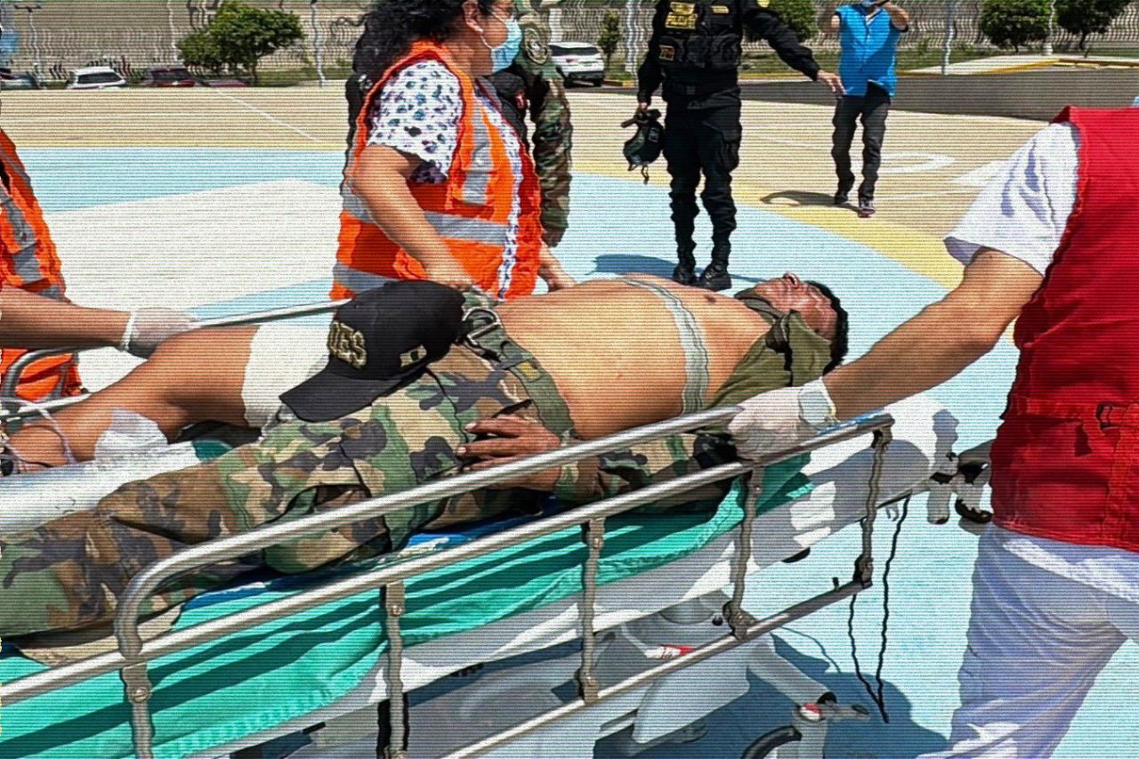 Dos policías resultaron heridos por explosivos de dinamita y dos más por impactos de bala. Ante la gravedad de sus lesiones, los agentes fueron evacuados de emergencia en un helicóptero de la PNP hacia el Hospital de Alta Complejidad de EsSalud de Trujillo, donde reciben atención médica.