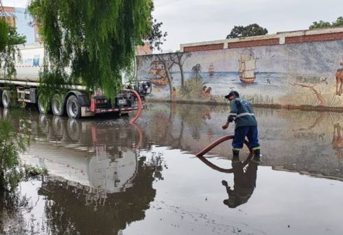 Personal municipal y de serenazgo continúa trabajando para retirar el agua empozada, mientras se evalúan daños menores en infraestructura y centros educativos como CUNA MÁS en distritos como Huanchaco, La Esperanza y Laredo.