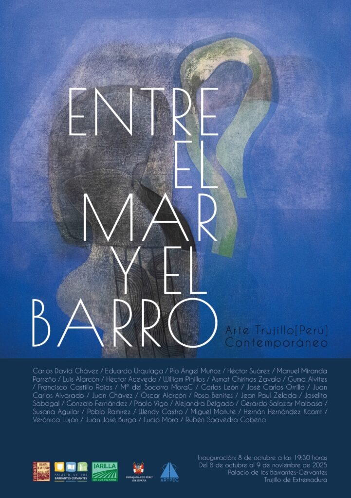Del 8 de octubre al 13 de noviembre de 2025, el Palacio Barrantes-Cervantes de Trujillo, Cáceres, en España, albergará la exposición Entre el Mar y el Barro: Arte Trujillo Contemporáneo, que reunirá a más de treinta artistas del norte peruano en una muestra colectiva con curaduría de la doctora María del Socorro MoraC.