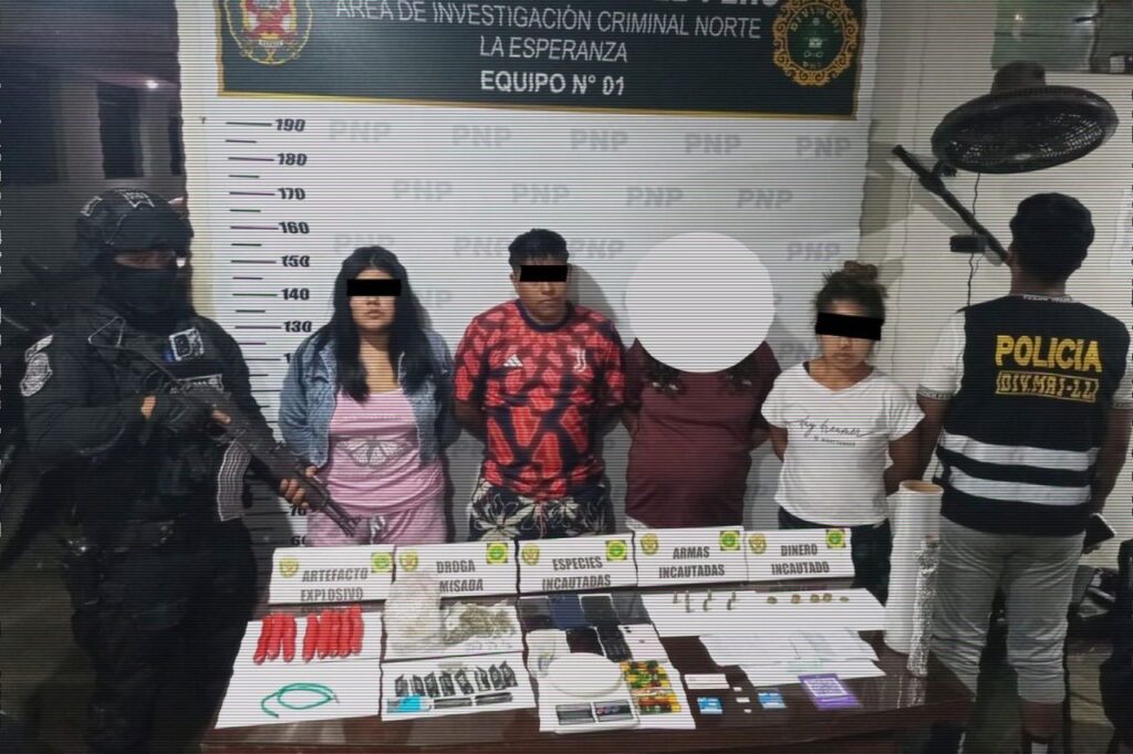 La Policía Nacional del Perú (PNP) capturó a tres presuntos integrantes de la banda criminal Los 4×4, dedicada a robos al paso de vehículos y otros delitos. La intervención se llevó a cabo en la cuadra 4 de la avenida América Sur, frente a la Comisaría de La Noria, en Trujillo, y permitió la incautación de un arma de fuego, celulares robados y documentos de identidad presuntamente sustraídos a sus víctimas.