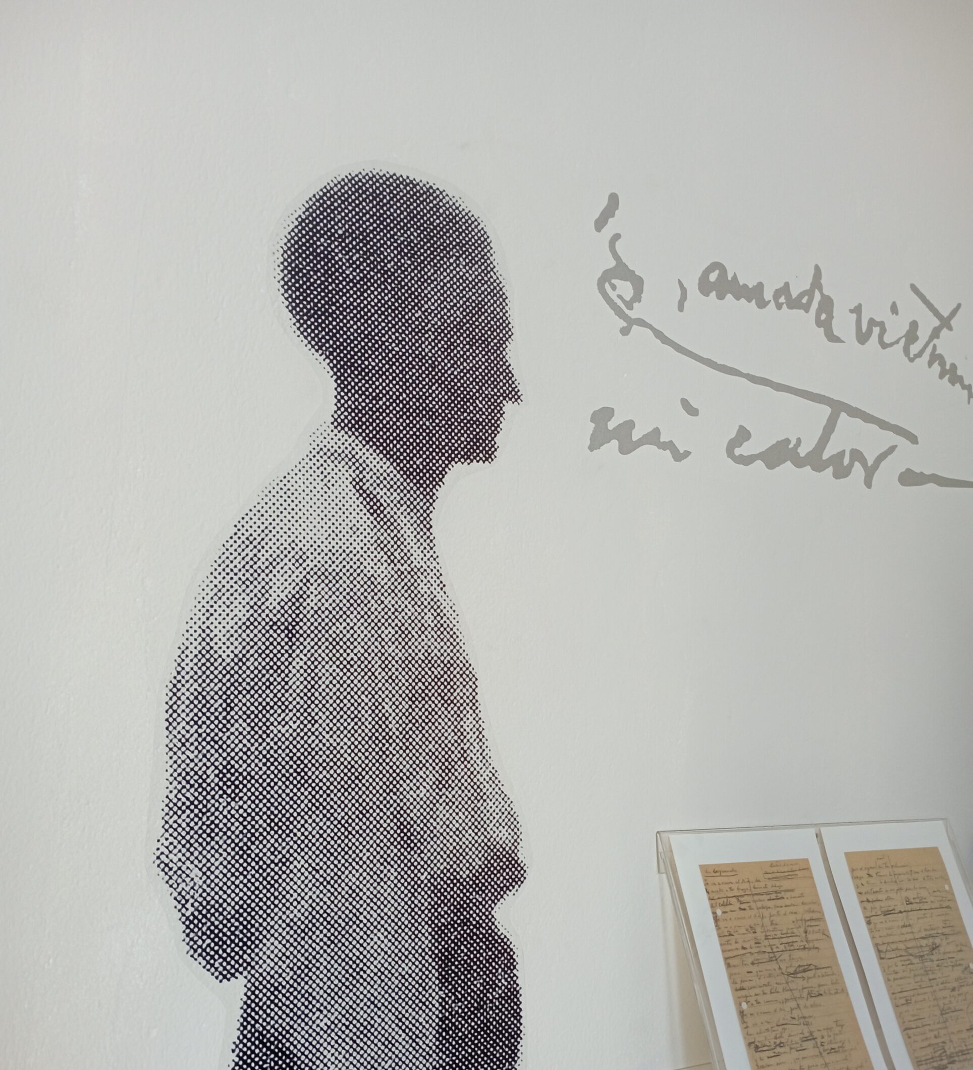Por otro lado, la segunda sala contiene las tres secciones que muestran la vida y obra de Vallejo, con más poemas gigantes y fotografías en las que se le aprecia en distintas situaciones.